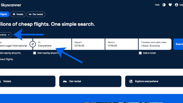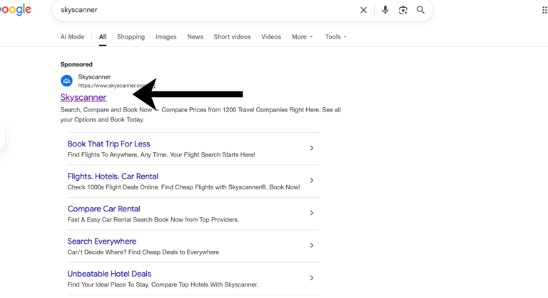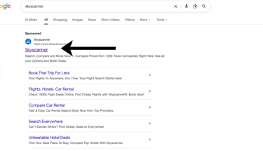 Step one go to your search bar and type in Skyscaner and click on the first link that pops up.